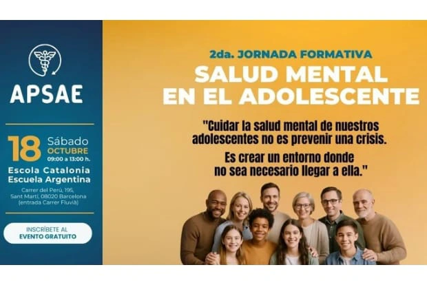 La salud mental de los adolescentes es uno de los grandes retos de nuestra sociedad. Conscientes de ello, la Asociación de Profesionales de la Salud Argentinos en España (APSAE) organiza la II Jornada Formativa sobre la Salud Mental Adolescente, que tendrá lugar el sábado 18 de octubre de 2025, de 9:00 a 13:00 horas, en la Escola Catalònia de Barcelona.